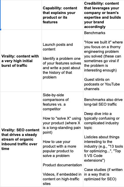 Every founder of a developer-focused company wants content that rockets to the top of Hacker News and stays there. But viral content is a massive sugar rush. You are reaching a lot of developers, the overwhelming majority of whom probably do not have a pressing need to try your product now. Thus, while this viral content is critical for driving brand recognition and conversation about your company, it likely won't lead to meaningful conversion towards paying users.