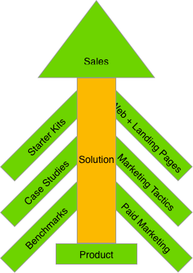 Your solution hypotheses will also form the basis for your sales enablement plans, giving your sales team clear customer targets, clear messaging, and clear assets with which to present your product or service to customers. When you lack a strong solution focus and instead fall back on a product focus, you are putting a lot of unnecessary pressure on your sales team to react to customer needs and position your product on the fly.
